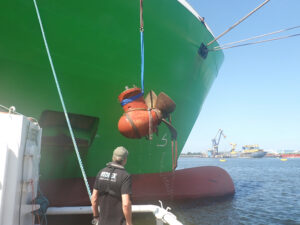 We reinstalled the bow thruster of a 170-meter container ship during its stop in Rotterdam. By performing the operation underwater,